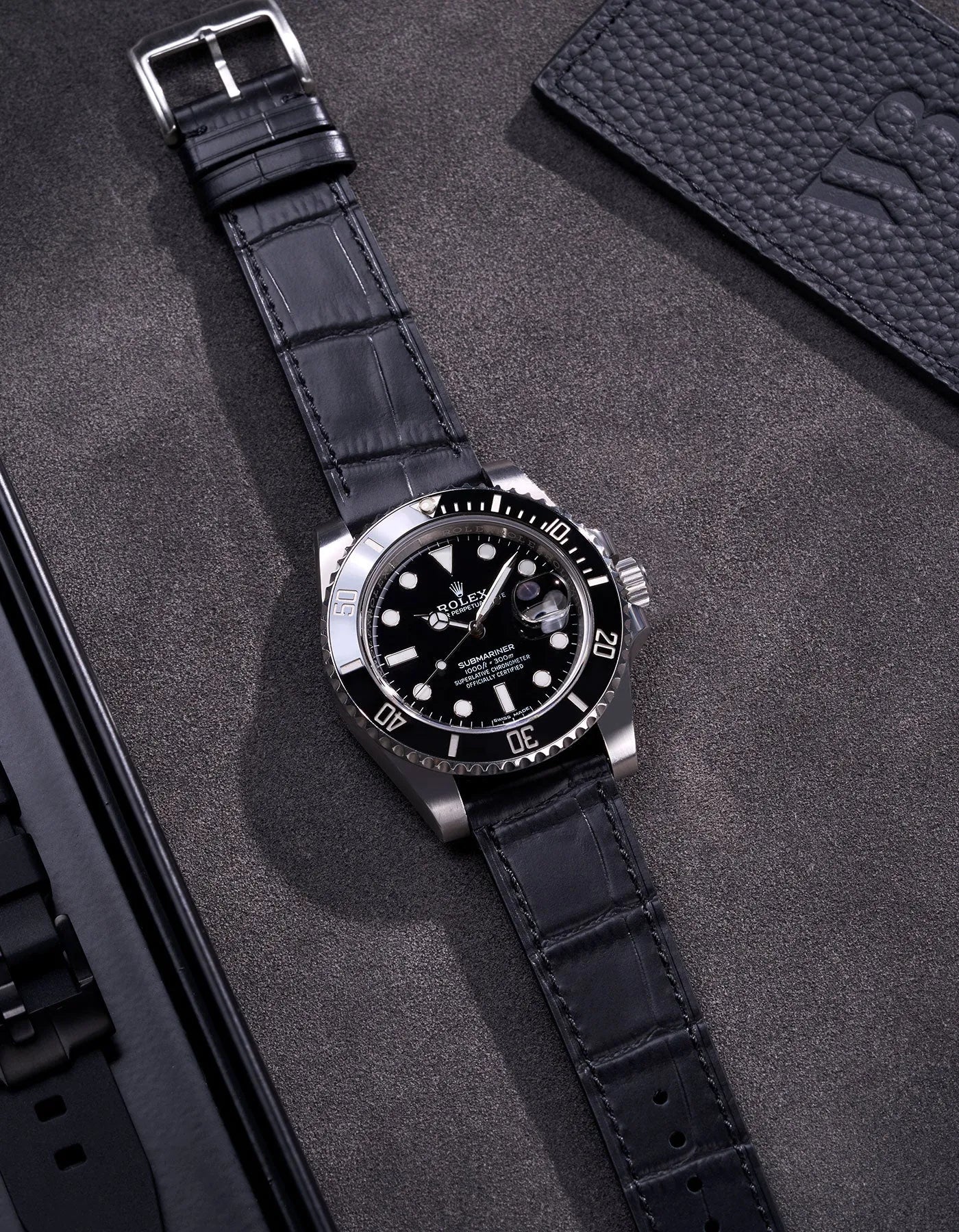 Black Embossed Alligator Leather Strap 18mm-21mm - OM Luxury