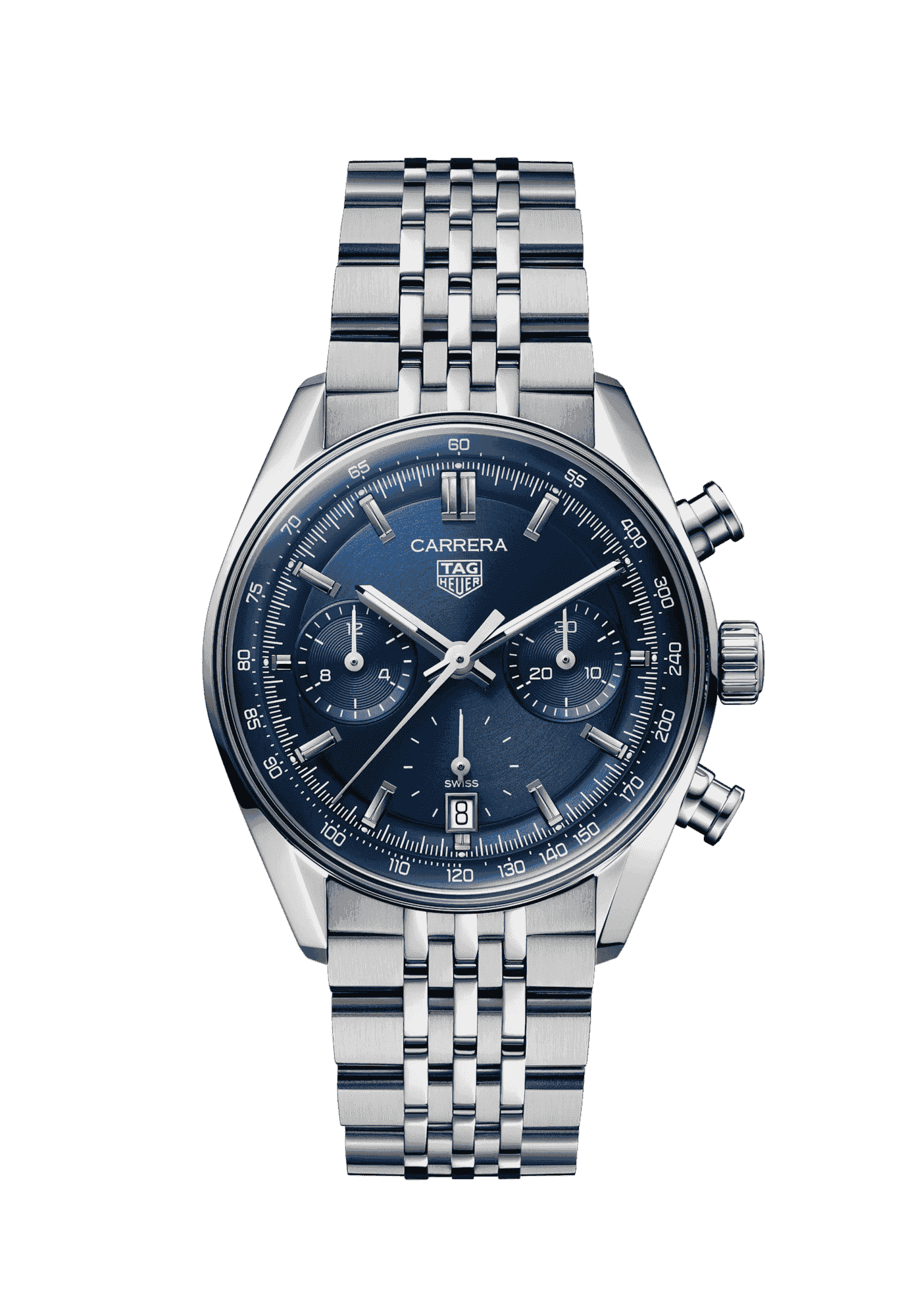 Reimagined from the reverse panda 2447 NS model, this prestigious black 39mm version of the TAG Heuer Carrera Chronograph encapsulates the spirit of the collection with a modern twist. With its iconic beads-of-rice bracelet—blending vintage inspiration and modern craftsmanship —this timepiece is resolutely driven to dare.