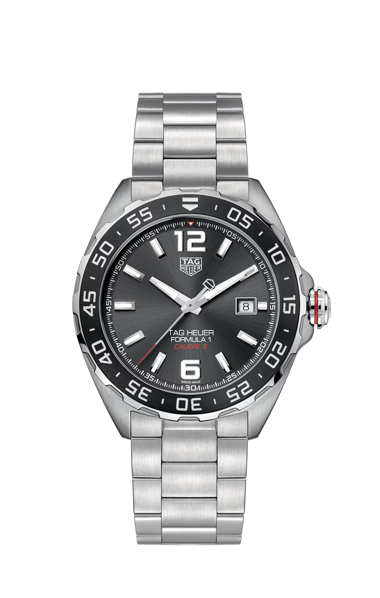 A classic three-hand men’s quartz watch with oversized “6” and “12” on a sunray blue dial – inspired by Formula One, embodying TAG Heuer’s unique racing heritage and commitment to excellence under pressure.