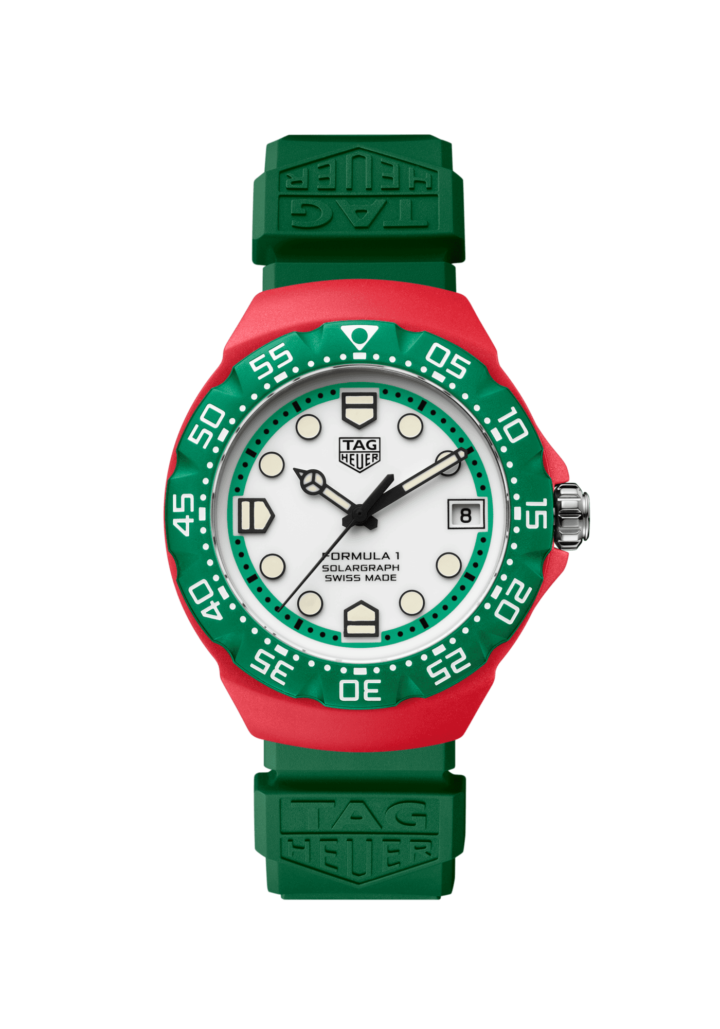 The TAG Heuer Formula 1 Solargraph (38mm) takes bold to the next level with its black DLC case and striking red accents. With Solargraph technology driving the Calibre TH50-00, this limited edition watch is designed for those who appreciate cutting-edge innovation in both form and function.