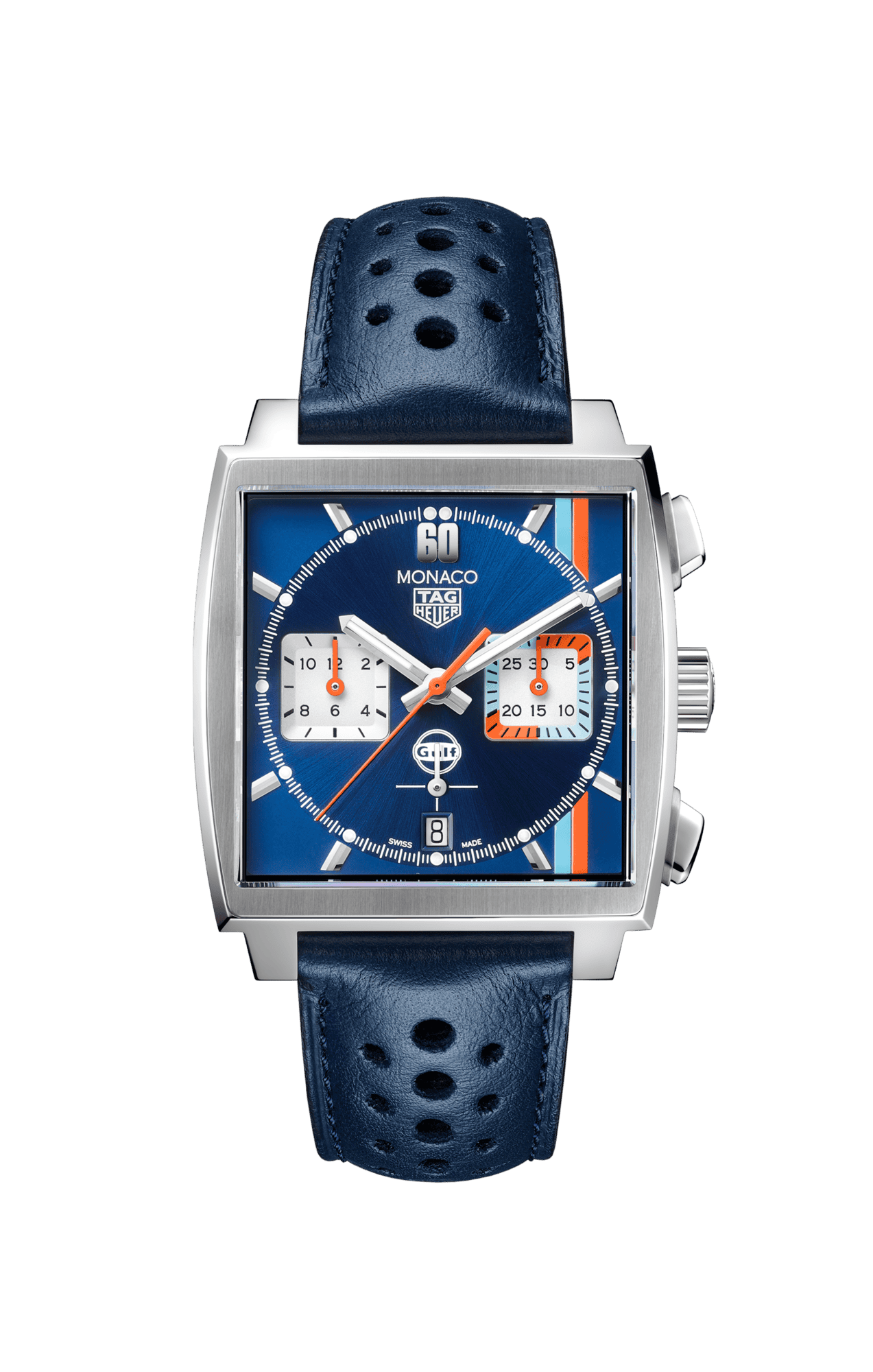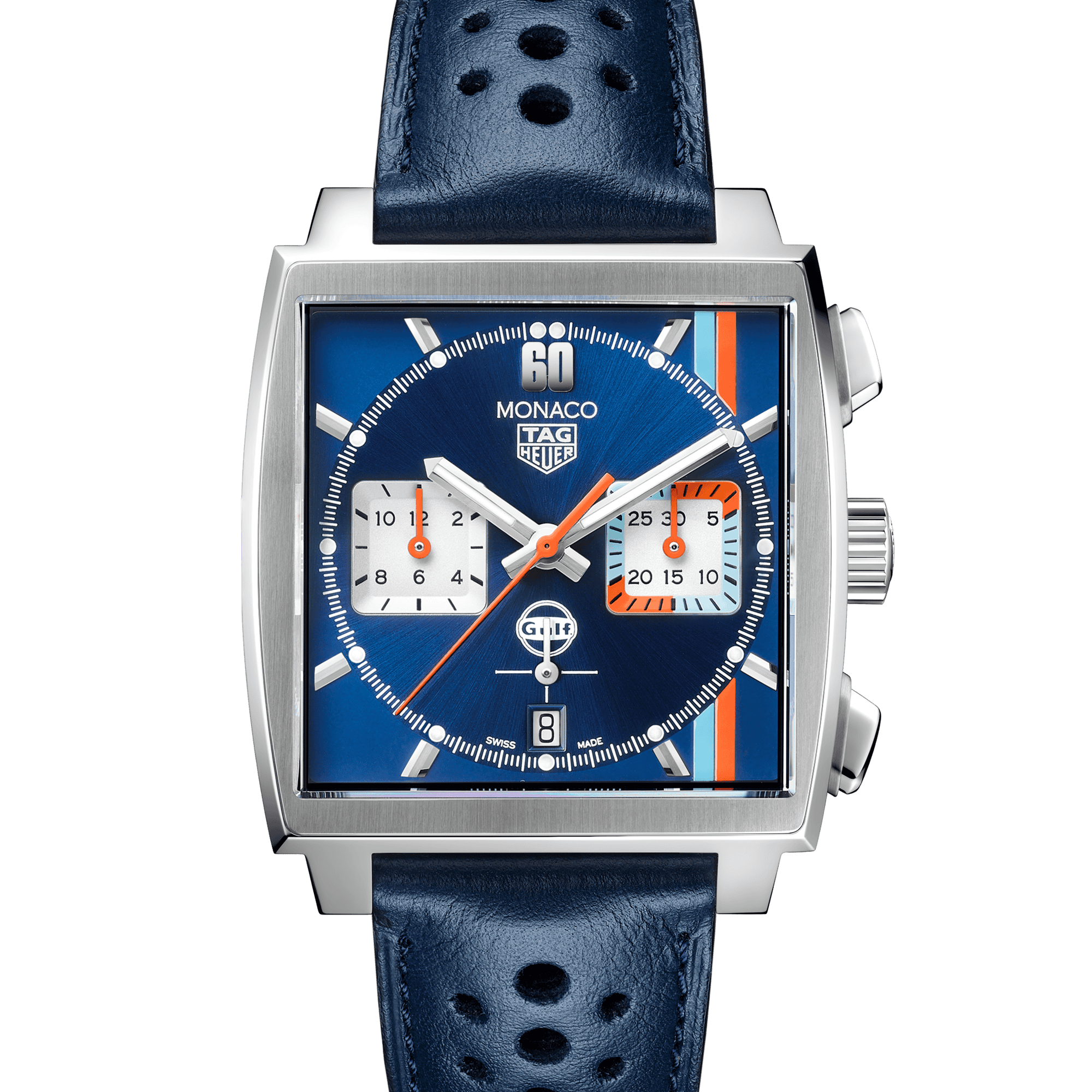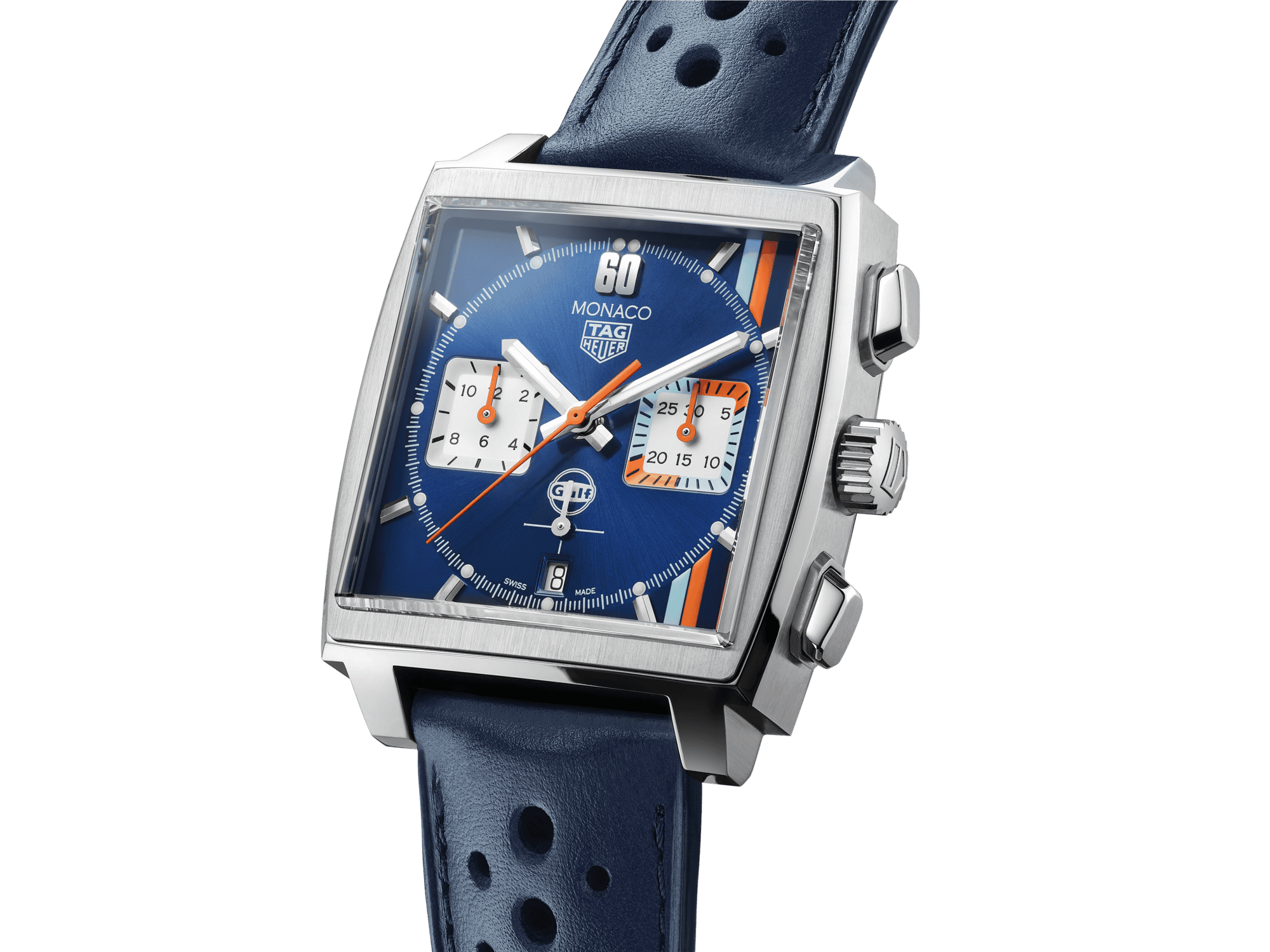 This automatic chronograph Monaco Calibre 11 is THE original model, the very first square and waterproof chronograph in the world. Revolutionary and icon of the "King of cool" Steve McQueen, this calibre 11 edition still features the famous crown on the left; it was a way of showing that manual winding was no longer necessary.