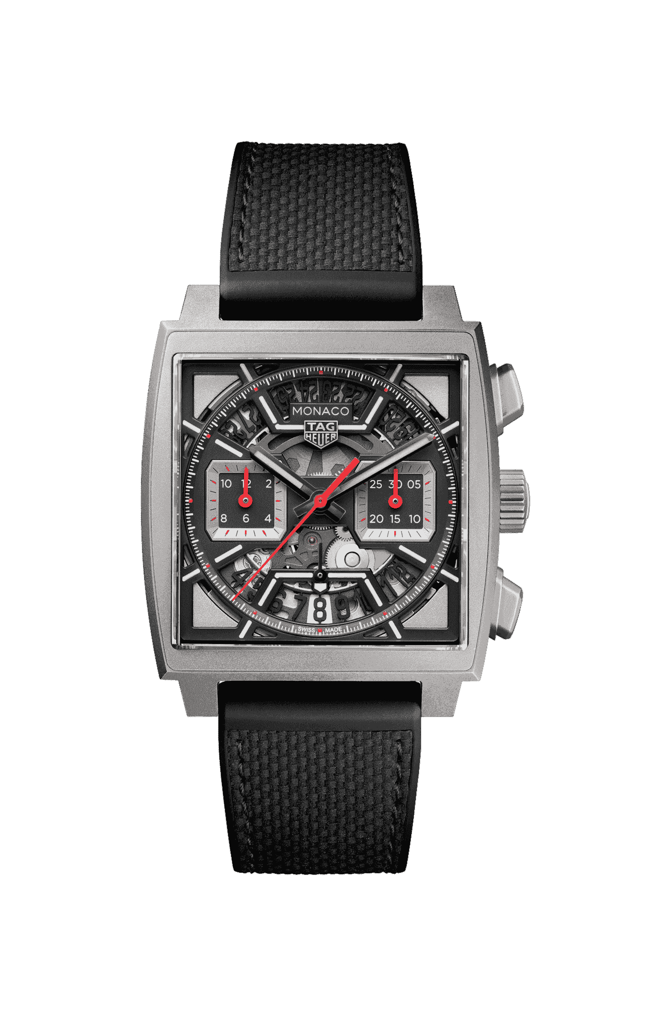 Embrace the thrill of the race with this dark blue TAG Heuer Monaco. A modern reinterpretation of an iconic design, this timepiece combines a bold blue and yellow palette with a contemporary skeleton dial—A fiercely charismatic icon.