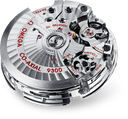 Hand-wound chronograph movement with Co-Axial escapement. Master Chronometer certified and METAS approved, it is resistant to magnetic fields up to 15,000 gauss. Free-sprung balance with silicon balance spring. Rhodium-plated finish, bridges with straight "Côtes de Genève".