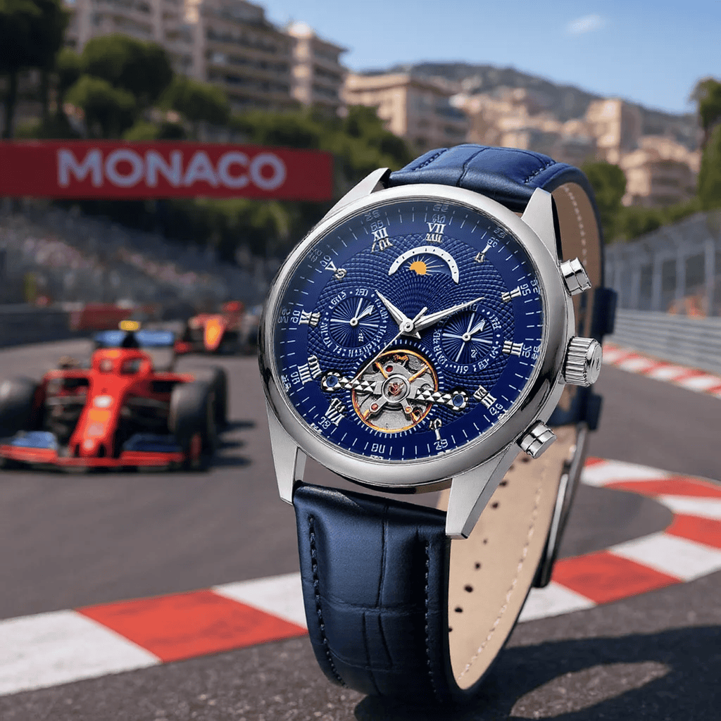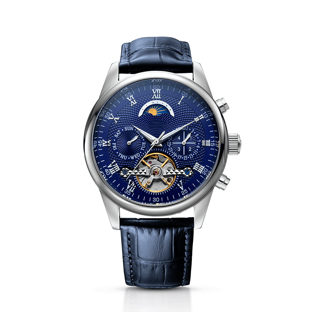Discover the elegance of the Legacy 93 – Midnight Blue Edition, a masterpiece that combines timeless design with modern sophistication. Featuring a striking midnight blue dial, this watch is a perfect blend of aesthetics and functionality. The intricate dial showcases a day and date display, complemented by precise chronograph subdials, adding both style and utility to your wrist.